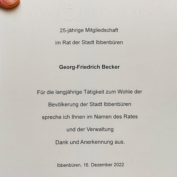 Georg-Friedrich Becker, lieber Fritz, wir danken dir für dein unermüdliches Engagement über diese lange Zeit!